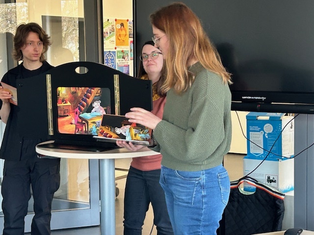 Eine weitere Station widmete sich der digitalen Bilderbuchplattform Onilo. Die Studierenden arbeiteten mit animierten Boardstories, die sich besonders zur sprachlichen Förderung, Wortschatzerweiterung und zum dialogischen Lesen eignen. Sie probierten interaktive Elemente aus und entwickelten Ideen für den Einsatz in Kindergarten und Grundschule.